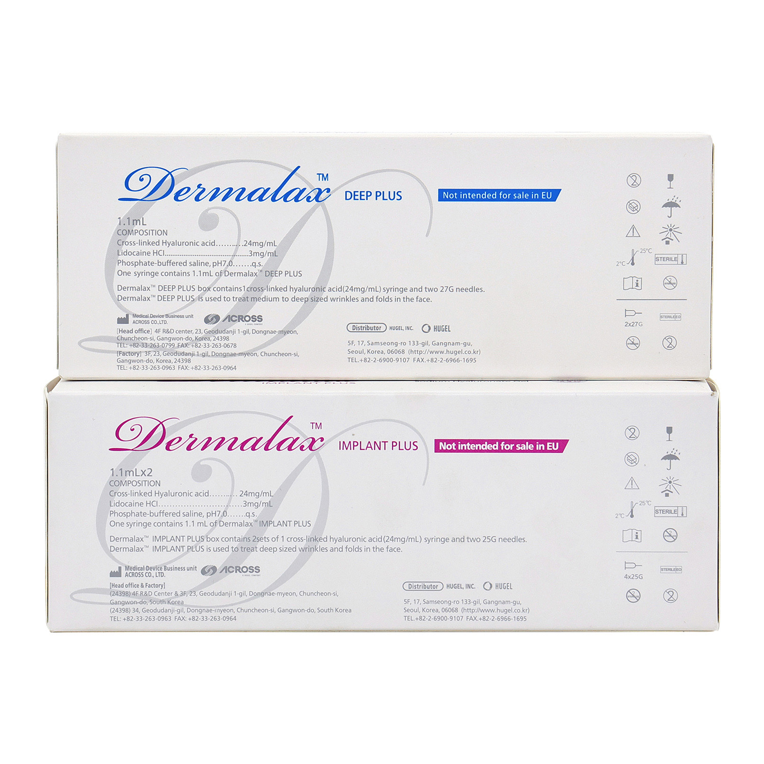 Dermalax Deep Plus has a thicker texture and is suitable for filling deeper wrinkles and structural modification, rather than repairing shallow fine lines.